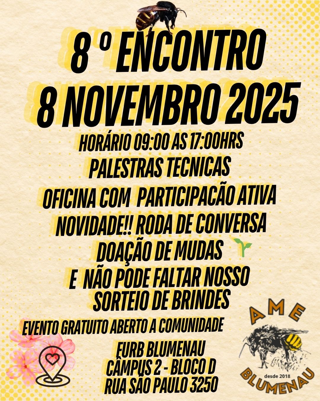 O 8º Encontro AME Blumenau será realizado no dia 8 de novembro de 2025, das 9h às 17h, no Campus 2 da FURB Blumenau, e promete uma programação cheia de conhecimento, interação e atividades para toda a comunidade!