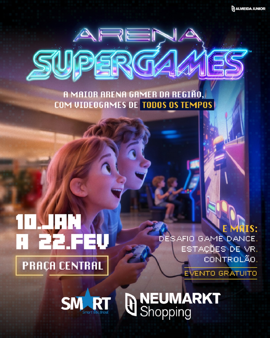 A Arena Super Games chega ao Neumarkt Shopping como a maior arena gamer da região, reunindo videogames de todos os tempos em uma experiência que conecta gerações.