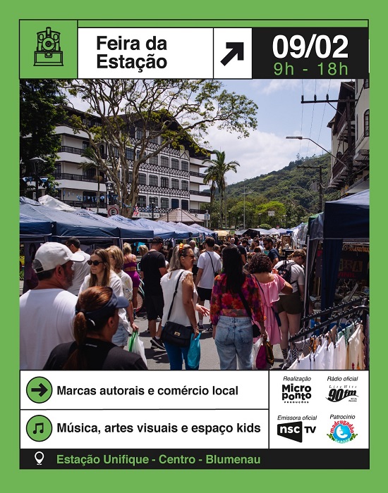 Para mais informações sobre a Feira da Estação, acompanhe as redes sociais: instagram.com/feiradaestacaobnu, facebook.com/feiradaestacaobnu, ou entre em contato pelo telefone (47) 9 9195-6275.